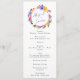 Eléments : couronnes de fleurs tropicales entourant vos noms et tail. Les noms sont dans un script fantaisiste, tandis que les détails sont dans une police sans serif moderne. Couleurs : violet, rose, jaune, vert, orchidée, prune, magenta, fuschia, citron, Thèmes : clair, tropical, plage, destination, romantique, bohème, gai, moderne, décontracté. Collection : Décontracté vibrant Magenta Violet Jaune Collection de Mariages Type de produit : Programme