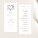 Vintage Élégant Floral Crest Mauve Purple Wedding Programme. Ordre Mariage traditionnel. Mariage de la crête végétale vintage Programme de la crête de monogramme