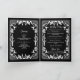 Un design moderne de cowboy occidental avec des éléments dessinés à la main d'un crâne de vache, des fers à cheval, des ornements floraux et des cactus. Le mariage à bordure florale noir et blanc est orné de fleurs dessinées à la main, de cactus, de crâne de vache et de fer à cheval. Ce mariage campagnard contemporain moderne de style occidental est idéal pour toutes les saisons. Un élégant ranch noir et blanc, une ferme ou une grange design avec des illustrations dessinées à la main. Un Cowboy Western Country à thème mariage commande de carte de service design avec des éléments modernes et élégants. Des invitations de mariage et d'autres articles de papeterie sont également disponibles.