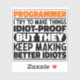 Funny Programmer Sayings "Programmer I Try To Make Things Idiot Proof But They Keep Making Better Idiots". Grab this Funny Programmer design as a funny gifts for an awesome mom, dad or friend.