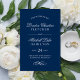 Le bleu marine profond crée un arrière-plan sophistiqué pour ce programme de cérémonie classique, avec une typographie blanche et sérifée qui présente "Le Mariage de" dans un contraste élégant. Un motif décoratif blanc en forme de parchemin ajoute une touche finale raffinée. Les pages intérieures sont entièrement personnalisables pour votre cortège de mariés, l'ordre de la cérémonie et un message de remerciement personnel sur la couverture arrière. Les programmes sont imprimés sur du papier de poids texte et arrivent à plat, nécessitant un simple pliage au centre.