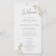 Faites de votre mariage une journée inoubliable grâce à nos programmes de mariage simples et élégants. Doté d'un design minimaliste agrémenté d'une douce touche florale, ce programme saisit parfaitement l'essence de l'élégance intemporelle. Idéal pour les couples à la recherche d'une touche de beauté naturelle, les détails fleuris apportent du charme sans accabler le design général. Avec des sections de texte personnalisables, vous pouvez facilement inclure des détails sur la cérémonie, la fête de la mariée et des messages spéciaux pour vos invités. Ce programme de mariage allie simplicité et sophistication, créant un souvenir que vos invités chériront pour les années à venir.
