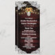 Programmes de mariage en bois et jarres de maçon tournesol - présentent un fond en bois de grange rouge foncé bordé de dentelle et décoré de guirlandes lumineuses chaudes. Le design présente également un bouquet de tournesols à l'intérieur d'une jarre de maçon que vous pouvez personnaliser avec les initiales de votre choix.