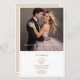 Célébrez votre histoire d'amour avec ce programme de mariage élégant et intemporel. Le design présente une photo de couple romantique pleine page comme point central, encadrée d'une typographie épurée pour un parfait équilibre entre simplicité moderne et charme classique. Les noms des mariés et la date du mariage sont affichés bien en vue dans une police sans-serif sophistiquée, tandis que les détails supplémentaires sont présentés dans un script élégant de style manuscrit ci-dessous.