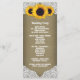 Les programmes de mariage rustiques en toile de jute et dentelle avec tournesol présentent un fond rustique de campagne imprimé avec de la toile de jute et de la dentelle avec des tournesols.