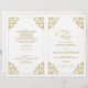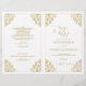 Elégant programme de mariage - Nadine (Or) : Ces élégants programmes de mariage présentent un design vintage de coins en or. Nous les avons configurés pour vous afin qu'ils soient très faciles à modifier. Il suffit de taper votre texte, et ils doivent tous être configurés pour vous. Si vous avez besoin d'apporter plus de changements, cliquez simplement sur "customiser plus" pour vous déplacer autour de vos titres et ajuster. Vous pouvez cliquer sur le design des coins et choisir une nouvelle couleur de remplissage pour changer la couleur du design! Il y a également une image d'alignement pratique dans le modèle, donc si vous cliquez sur l'icône de l'oeil à côté, il vous aidera à voir où aligner votre texte si vous avez besoin. Vous pouvez modifier la couleur de votre texte, de vos en-têtes et de votre bordure dans la zone de modification. Merci de chercher ! J'espère que vous et vos invités apprécierez : )
