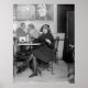 Old 1920's photo of woman in soda shop / diner holding a tipping cane or flask cane, popular during prohibition to hide alcohol.