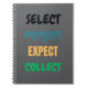 A sleek notebook featuring the bold phrase “Project Select Expect Collect” on the cover. Perfect for everyday notes, journaling, or planning with a minimalist and modern look. .