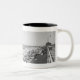 Promenade and beach B&W elevated view Two-Tone Coffee Mug