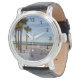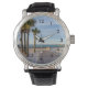 Montre poignet offrant une vue sur la promenade pavée en brique à l'entrée de Pensacola Beach, Floride, États-Unis, un matin calme avec quelques palmiers et une statue de surfer. Vous recherchez plus d'impressions ou de produits ? N'hésitez pas à visiter mon magasin : http://www.zazzle.com/timelessmomentsphtgy Cette photo a été prise par Jennifer White with Timeless Moments Photography. Toutes les images sont protégées par copyright © Timeless Moments Photography.