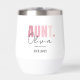 Celebrate a brand new aunt in style with this chic “Promoted to Aunt EST 2025” personalized thermal wine tumbler! With a modern blush pink and white design, this stemless tumbler is perfect for sipping wine, coffee, or mocktails on-the-go.