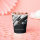 A promotional photographer's black and white paper cup displays the customizable company tagline, company website, and QR code. For assistance or to discuss a custom design, contact https://t.me/KBMD3signs_chat.