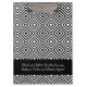 The Promotional Script Company Tagline Black & White Clipboard shows a classic square pattern and is designed as a template to easily replace the company tagline on the front, logo website, and QR code details on the back. It is part of the Black & White Business Card Designs & Materials collection. The black and white diagonal tiles pattern clipboard complements the professional collection as merchandise, reward, promotional gift, or unifying branded office accessory.