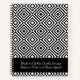 The Promotional Script Company Tagline Black & White Notebook shows a classic square pattern and is designed as a template to easily replace the company tagline on the front, logo website and QR code details on the back. It is part of the Black & White Business Card Designs & Materials collection. The black and white diagonal tiles pattern notebook complements the professional collection as merchandise, reward, promotional gift, or unifying office accessory.