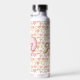 A sweet and romantic way to ask a girl or boy to prom! Will you go to prom with me water bottle.. Background is pink and gold hearts.