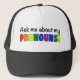 Gender identity can be complicated -- ask me about my pronouns. This design incorporates the rainbow colours of the GLBTQ pride flag. It is a great way to start conversations and raise awareness of gender diversity.