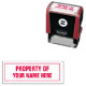 Property Of and add your custom name to this stamp to label books or other items that need to be kept or returned. Bold font in red in an outlined box gets attention.