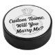 Faites votre demande en mariage de manière audacieuse et inoubliable avec ce palet de hockey personnalisable avec un design de bague de fiançailles et un texte personnalisé. Le message par défaut est « Voulez-vous m'épouser ? », mais tout le texte peut être modifié, ce qui en fait une idée de proposition de mariage créative pour les amateurs de hockey et les amateurs de sport.