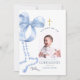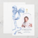Demandez aux parrains et marraines de votre enfant de la manière la plus significative avec cette élégante carte de proposition de parrainage. Conçue avec un doux noeud bleu, un chapelet aquarelle et un espace pour une photo personnalisée, cette carte est parfaite pour le baptême ou la christination d'un bébé garçon. Personnalisez les noms, le message et la signature pour créer un souvenir qu'ils garderont précieusement pour toujours. Une belle façon de dire "Veux-tu être mon parrain/ma marraine ?" remplie de foi.