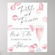 Watercolor elegant rose petals with glass of champagne and text "Petals and Prosecco".