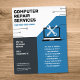 A professional computer repair services flyer with a clean, modern design featuring bold blue and white colors, and includes a list of services! The design features subtle tech-inspired graphics like circuit lines and a laptop with screwdriver and wrench, while maintaining excellent readability and a trustworthy, professional appearance. Perfect for activities such as IT technician, hardware and software support, upgrades, maintenance, and more, either in-store or on-site.