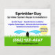 Logo vectoriel simple en bleu et vert de l'arroseur de pelouse pulvérisant l'eau sur la pelouse enfermée dans le plan de goutte d'eau.