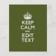 Votre personnalisation Keep Calm vous dit sur une belle décoration personnalisée couleur vert olive. Un style personnalisé Keep Calm en disant sur un cadeau de nature. Essayez humour ou fantaisie sur vos mots créatifs sur deux lignes de texte modifiables. N'oubliez pas d'utiliser les lettres CAPITAL pour obtenir les meilleurs résultats. Les motifs de broderie sont disponibles dans une large sélection d'options de couleurs populaires. Utilisez le lien "Demandez à ce concepteur" pour nous contacter pour vos demandes spéciales de design ou pour obtenir de l'aide pour votre projet de personnalisation.