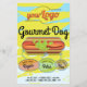 Obtenez l'attention de vos clients avec ce vectoriel lumineux illustré hot dog gourmet. Remplacez le logo et modifiez le texte pour customiser votre restaurant etc ... Cliquez sur "personnaliser" pour plus de modifications.