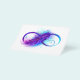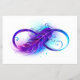 Infinity symbole with a beautiful feather painted in purple and blue bright colors on white background