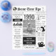 Le modèle comprend des détails et des statistiques des années 1990 avec une marge pour des photos personnelles et des informations sur l'honneur. Faites-le vous-même en ajoutant votre texte et vos photos personnelles (les photos changeront automatiquement en noir et blanc). Pour accéder aux outils de montage avancés, accédez à Personnaliser, faites défiler et appuyez sur le lien "cliquer pour customiser plus loin". Pour plus de designs correspondants, cliquez sur le lien "Autres produits de cette collection".