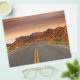 Une superbe photo de paysage d'un coucher de soleil sur une route.
