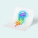 Grande méduse irisée, artistiquement dessinée, brillante, avec de longues tentacules sur le blanc, peinte sur l'arrière - plan multicolore. Méduse arc-en-ciel.