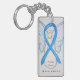 Awareness ribbon angel keychain features the art of a light blue awareness angel painting. The art side notes "Prostate Cancer Awareness" and the reverse side states "I Hope & Support Awareness for a Prostate Cancer Cure!" Add your own custom words for personalized angel art cause awareness custom charm key chains! You can also remove the text for an art only angel pendant key chain. The light blue awareness angel ribbon painting art keychains can be customized with personalized messages to make great awareness cause art key chains for fundraisers, awareness gifts, or other special events. Give this angel art keychain charm as an awareness ribbon gift for any occasion.