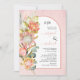 Tropical protea flowers pampas grass and eucalyprus leaves soft pink arch wedding invitation. This lovely wedding design features an arch frame on blush pink stained background with your initals and text. On the left there are protea flowers, pampas grass and eucalyptus leaves.