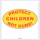 PROTECT CHILDREN NOT GUNS! Show your support for protecting children and students and for gun control reform. This bold, high visibility, no nonsense oval sticker with red text on a bright yellow background is waterproof and scratch resistant. This sticker can be ordered in six different sizes.