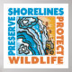 Bold, colourful design says: Preserve Shorelines, Protect Wildlife. Advocate for shores and beaches - ocean, lake, river, creek - habitats that support abundant life. Great gifts for the eco-friendly.