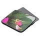 L'oeuvre de cette passoire de 15 pouces est une photo originale de MaeFlowers d'un plante impatien de Nouvelle Guinée, en fleur de fleurs roses chaudes. La photo est un closeup montrant des parties de pétales de fleurs rose vif, un bourgeon de fleurs de couleur rose pâle, et les restes d'une floraison antérieure. Les feuilles vert foncé des impatiens sont longs et pointus, avec des bords déchiquetés contre un arrière - plan gris clair chaud. Le design a une texture tapisserie.