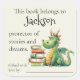 Add a touch of magic to every book with this delightful 3" square bookplate sticker, designed especially for little readers. The artwork features a whimsical illustrated dragon nestled next to a colourful pile of books, ready to guard each treasured tale. Across the top, the text reads, "This book belongs to [Name], protector of stories and dreams," with the child’s name displayed in a large, playful font for a personalized touch. Below the dragon, the sticker includes the phrase "Gifted with love by:" followed by a blank line for the gift giver to sign. With its bright, cheerful design and heartfelt sentiment, this bookplate is a perfect addition to baby shower gifts, birthday presents, or to start building a little one's first library.