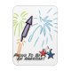 This design features a rocket with fireworks and red, white and blue stars with "proud to be an American" printed on the design. this design is featured on assorted styles and sizes.