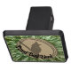 Proudly share your love of birding with this proud bird nerd trailer hitch cover featuring a bird silhouette in brown with a green starburst of stripes behind the silhouette. "Proud Bird Nerd" appears below the bird image and can easily be customized.