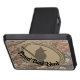 Proudly share your love of birding with this proud bird nerd trailer hitch cover featuring a bird silhouette in brown with a nature photo of tree bark behind the silhouette. "Proud Bird Nerd" appears below the bird image and can easily be customized.