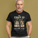 Graduation ceremony black & gold t-shirt featuring a graduates mortarboard, 5 photos of your son or daughter, the saying "proud dad of the graduate", their name, place of study, and class year.