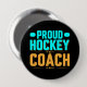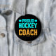Hockey coach button with aqua blue and gold text reads Proud Hockey Coach.