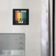 Proud Hockey Dad magnet features several colours of green, off white, yellow, and rust orange on a black background with white text that reads I Am a Proud Hockey Dad!
