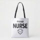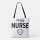 Minimal “Proud Nurse” tote bag featuring bold black typography and a simple medical icon.