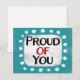 "Proud Of You" is a cute inspirational or motivational quote with a white accent shape surrounded by white textured whimsical dots.
