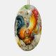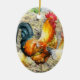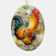 A barnyard rooster framed by a bevy of his lady hens and hay in soft focus around him. The gentle yellows and greys bring the colourful rooster into the centre of attention, right where the proud bird likes to be. This is a mixed media drawing in oil pastel and coloured pencil. By Amanda Diehl, Paxdomino Designs