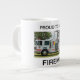Firemen are heroes and they should be very proud to be a fireman. Show off your pride with this jumbo mug.