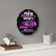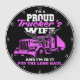 This loving wall clock is a proud declaration from a dedicated trucker's wife. Against a black background with a vibrant pink rim, it features a semi-truck in shades of pink. The prominent text "I'M A PROUD Trucker's WIFE AND I'M IN IT FOR THE LONG HAUL" celebrates her unwavering support and commitment. It's a perfect gift to honour the strength and love of a trucker's partner. The design tool can also be used to add custom text if you want your name or company on this clock. You can customize the colour of the frame to any colour you desire by going into the design tool.