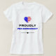 Heart with an American flag design at the top of the design. "Proudly" is written below that in bold, black typeface, with "Pro-Democracy" written below that in bold, blue letters. Beneath that is a small black star with lines on each side. Available in mens or womens sizes and various styles.